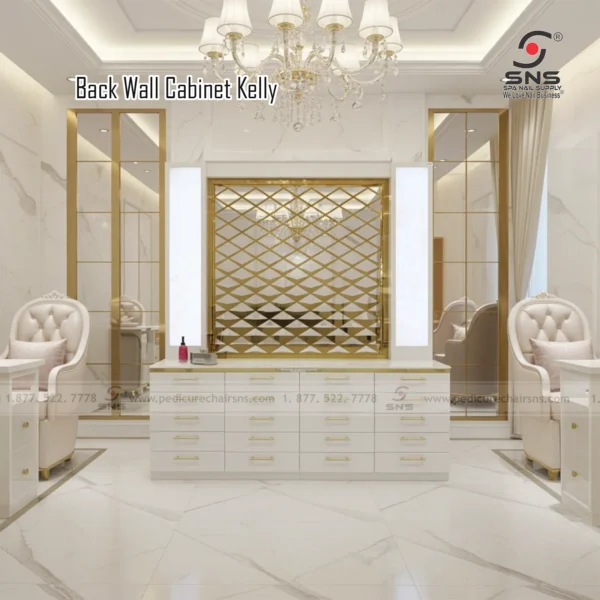 Discover Back Wall Cabinet Kelly: Elevate Your Nail Spa with Luxury and Functionality