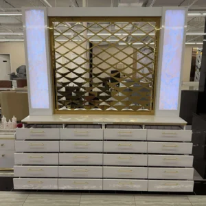 Versatile Partition Design: Beyond storage and display, this cabinet acts as a functional wall divider, creating private yet open zones in your salon. It’s ideal for separating pedicure lounges from product showcases, enhancing flow and privacy without sacrificing style.