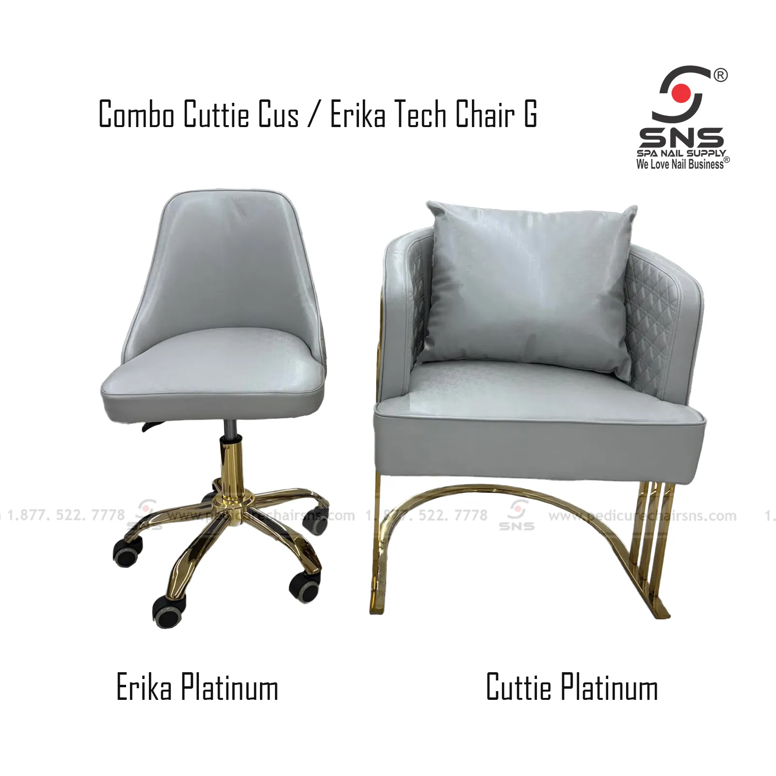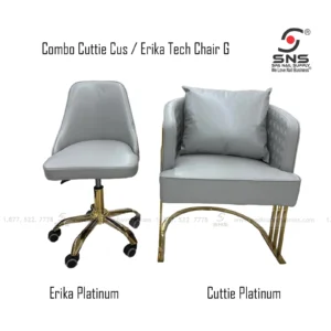 - The Erika Platinum (Technician Chair) is tailored for nail professionals, featuring a swivel base, lumbar support, and durable casters for effortless mobility during service.