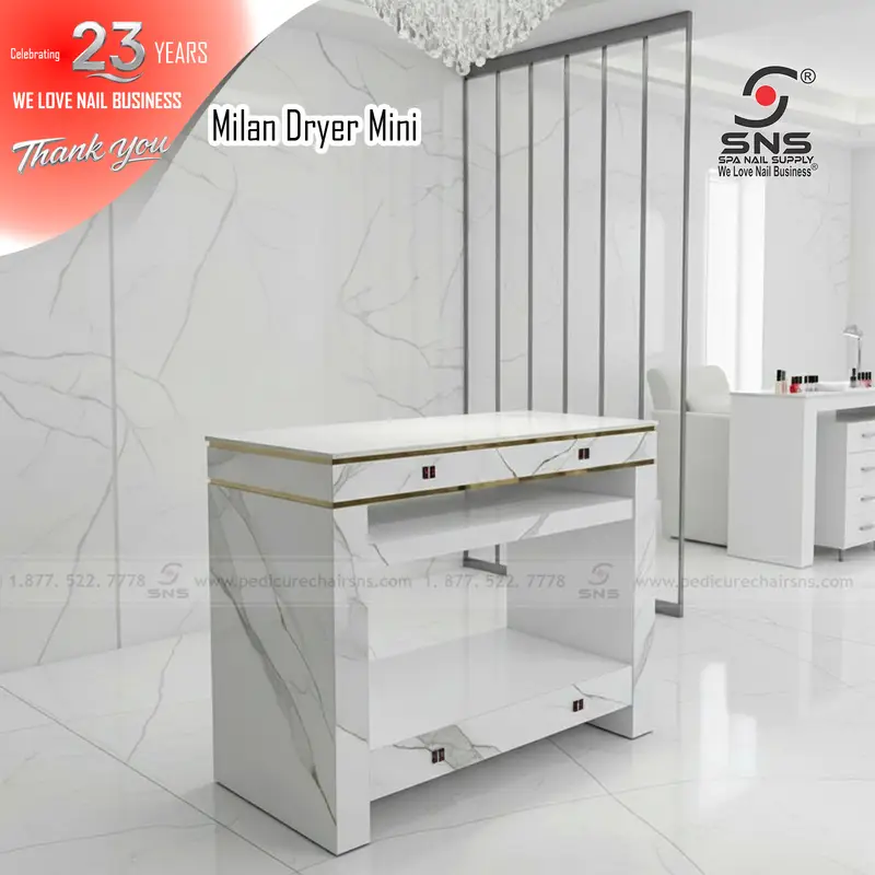 Upgrade your salon with the Milan Dryer Mini, a high-end nail dryer station designed to combine luxury aesthetics with professional performance. Crafted for modern nail salons, this dryer table delivers durability, functionality, and an elegant two-tone design that instantly elevates your space.