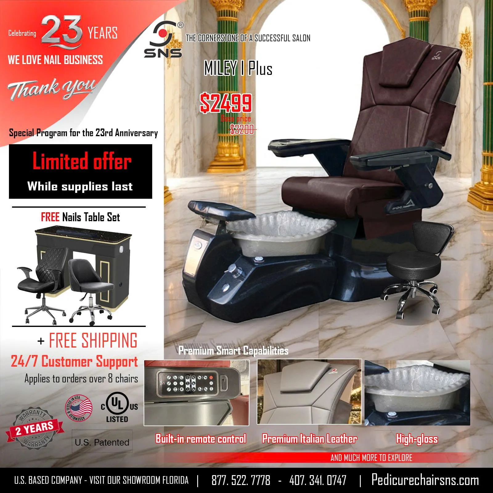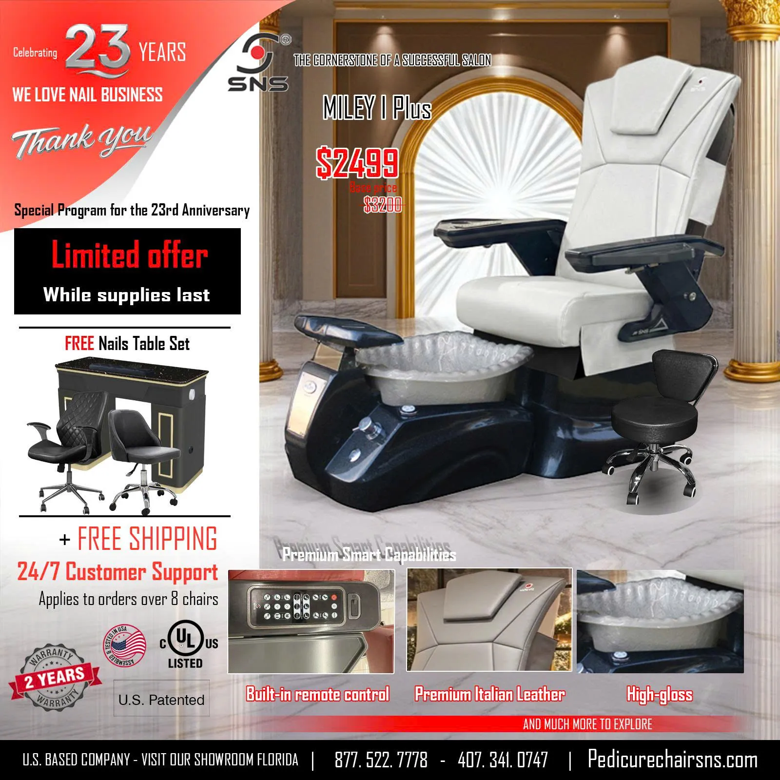 For 23 years, Spa Nail Supply has proudly served the beauty industry across the United States with one mission: delivering premium-quality nail salon equipment that stands the test of time. To celebrate our 23rd Anniversary, we are launching exclusive promotional programs to thank our loyal customers — and the highlight of this celebration is the Miley I Plus Pedicure Chair Package Deal.