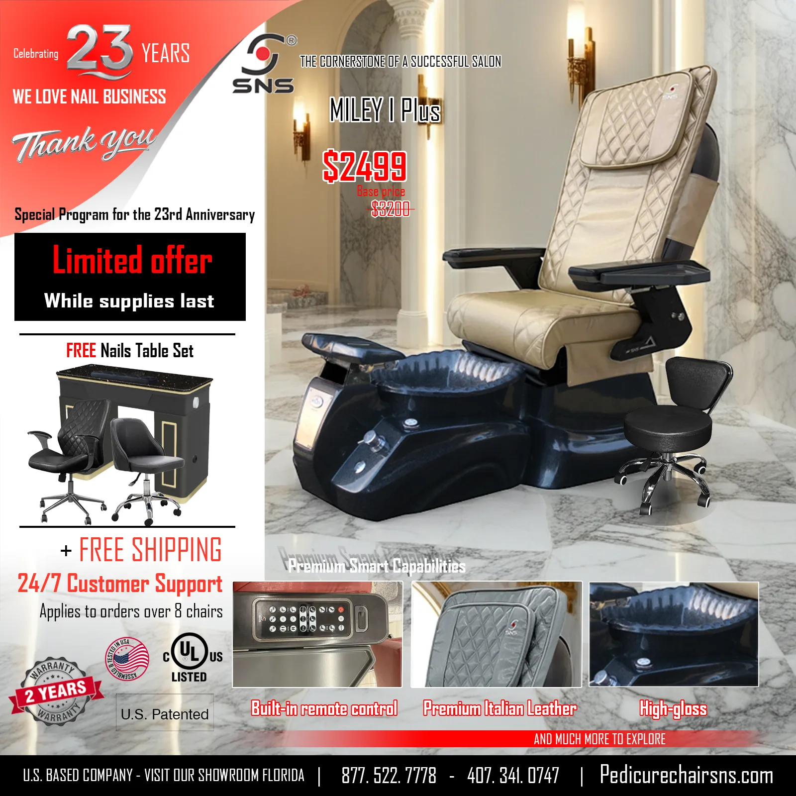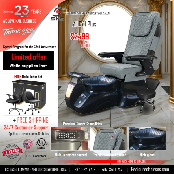 For 23 years, Spa Nail Supply has proudly served the beauty industry across the United States with one mission: delivering premium-quality nail salon equipment that stands the test of time. To celebrate our 23rd Anniversary, we are launching exclusive promotional programs to thank our loyal customers — and the highlight of this celebration is the Miley I Plus Pedicure Chair Package Deal.