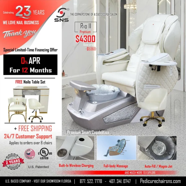For 23 years, Spa Nail Supply has proudly served the beauty industry across the United States with one mission: delivering premium-quality nail salon equipment that stands the test of time. To celebrate our 23rd Anniversary, we are launching exclusive promotional programs to thank our loyal customers — and the highlight of this celebration is the Rio II D Pedicure Chair Package Deal.